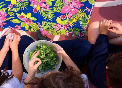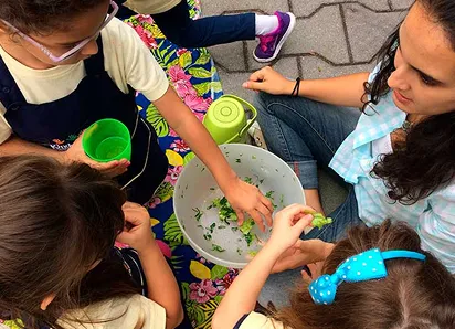 - Aulas de culinária com foco em aproveitamento integral dos alimentos e alimentação consciente